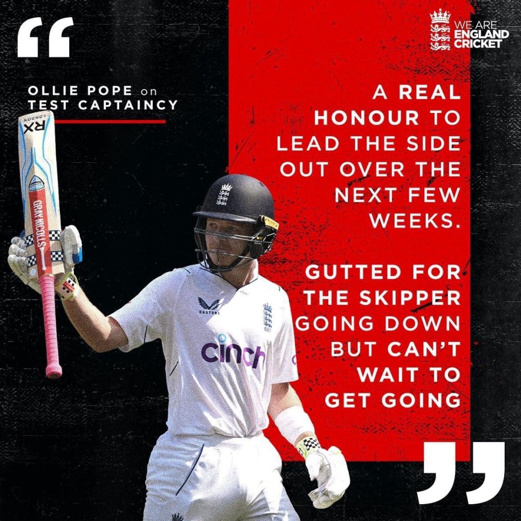 With the end of the Hundred the English Test Summer spools back into life this Wednesday in Manchester. At Old Trafford Cricket Ground, England are taking on Sri Lanka in the first of three Test Matches. Sri Lanka, and I mean no disrespect when I say this, are probably a couple of rungs down the ladder of Test playing nations. England would expect to win these three Matches with relative ease, however, fate has thrown a curveball (sorry to mix my sporting metaphors) into the series. Not only will it be the first home test series in 20 years to not include either Stuart Broad or Jimmy Anderson as players (Jimmy will be on hand in his role as fast bowling Tzar) but England Captain and chief advocate of Bazball, Ben Stokes is injured and out of the series. With England skipperless and having a bowling attack greener than cut grass, the question is, who is going to take the reins?